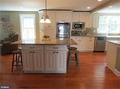 Great home rebuilt in 2006 in the very desirable, in-town neighborhood adjacent to Moorestown's beloved Baker School. Enjoy modern amenities throughout this 3 bedroom, 3.5 bathroom home. Large open kitchen with 5-burner cooktop, double wall ovens, farmhouse-style sink plus second sink near the 18th century butcher block island. Giant granite island with undercounter fridge and seating for 4+ next to the bright living room with gas fireplace and sun-splashed dining area. Large paver patio off the back and plenty of yard space for fun. Covered back porch leads to practical mudroom with both open and closed built-ins, plus a closet. So much smart storage in this home! Finished basement space offers multipurpose rec room and office with more storage space. Master suite with walk-in closet and bath with double vanity and oversized shower. Over 2100 sq ft, all less than 8 years old! Excellent location, smart design for modern living in historic Moorestown!