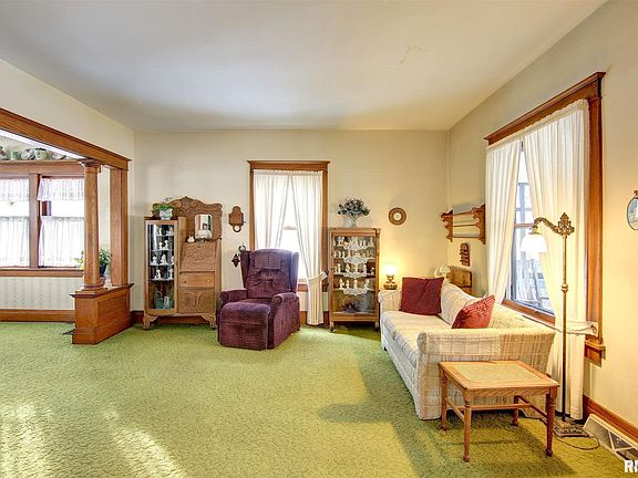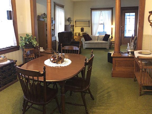 Charming 1.5 story home. Thinking of an enclosed front porch to sit and enjoy your early morning coffee or summer afternoon sun? This is the home for you. This lovely home features beautiful woodwork, main floor bedroom and 1/2 bath on main floor. The eat in kitchen features beautiful cabinetry you normally can only find in an older home. The large formal dining room allows for entertaining a large crowd and the dining room flows right into the large living room. This home also features a two car garage, new roof in 2015 and stove and refrigerator stay. Check out the virtual tour!!