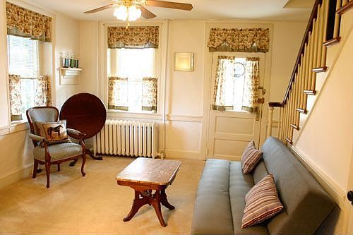 Charmingly restored farmhouse adjoining preserved farmland. Eat in Kitchen, Dining room, pocket doors to Living room. Full bath on main floor, 2 bedrooms upstairs. Newer roof & windows. New carpet & fresh paint, deep window sills. Huge porch with PVC rail. Separate laundry area. Separate heater. Large yard. Home is also for sale but not currently listed. No smoking rental