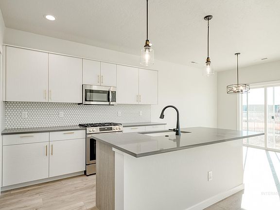 Visit us at our furnished model @619 N Aleppo Way Meridian, just down the street on Saturdays from 12-4pm! This brand new home located in vibrant Meridian, Idaho welcomes you with open arms. The Hugo 1650 is endearingly charming and reassuringly practical. The main level welcomes occupants and guests alike with open and friendly living spaces. The kitchen boasts upgraded finishes, including stainless steel appliances, a gas range, and stylish solid surface countertops. Easy access to the yard is just steps away through the dining room. Head upstairs where a primary suite spans the entire rear of the home and contains a walk-in closet and spacious en suite bathroom. The two other bedrooms and the laundry room are also situated upstairs along with a full bathroom. The garage offers plenty of space to park cars and toys or use as storage. Photos are of the actual home!