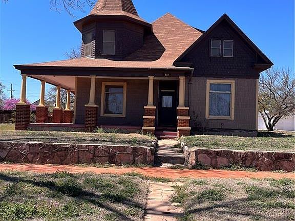 Victorian style home located close to SWOSU campus. This old historic home was built in 1920'sand is in good condition. The downstairs has amazing character with very tall ceilings and crown molding. The upstairs was an apartment at one time. bedrooms are large and spacious, bath needs some work and the storage building can only be used for storage. It is central heat and air