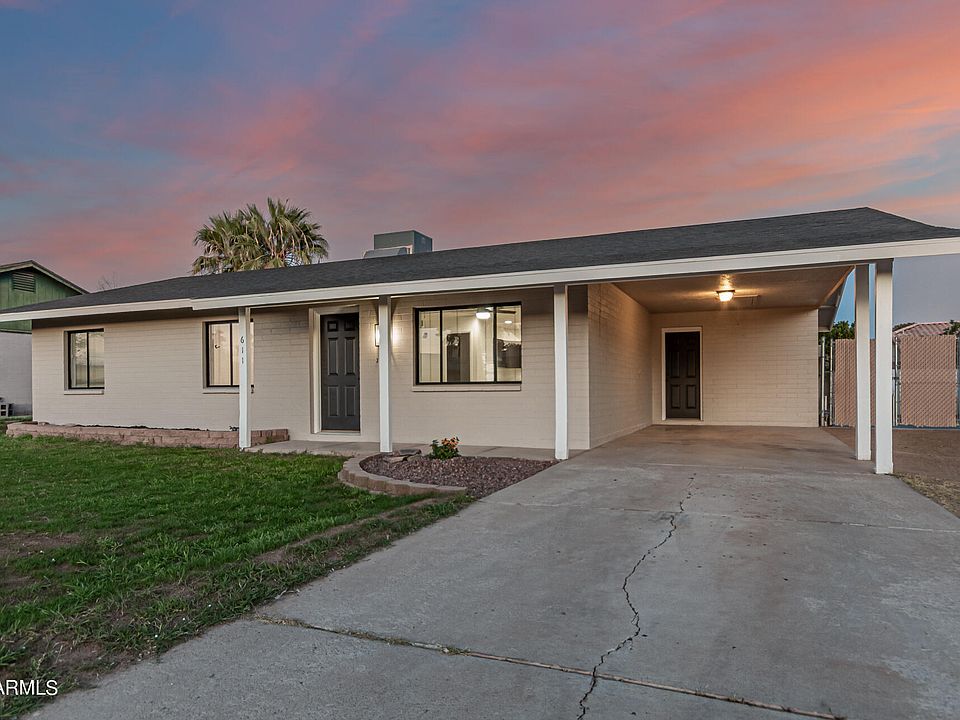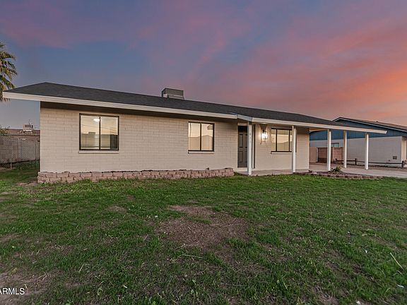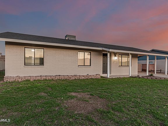 Stunning, fully remodeled 3 bed, 2 bath home on a hard-to-find irrigated lot with NO HOA in the heart of Downtown Buckeye! Completely renovated & ready to move right in! The attention to detail & designer touches are unmatched. Open floor plan featuring new wood-look LVP flooring in the living areas, beautifully tiled wet rooms, & plush carpeting in the bedrooms. All new doors, trim, hardware, lighting/plumbing fixtures, interior paint, & window coverings throughout. The kitchen truly is the heart of the home showcasing freshly painted cabinets with new hardware, beautiful quartz countertops, plenty of both counter & cabinet space, large center island with additional storage & breakfast bar, stainless steel sink & faucet, brand-new stainless steel appliances (oven has an air fryer!), rece ssed lighting, pantry, & French doors to the back patio. Spacious great room with large window & new ceiling fan opens to kitchen making it the perfect space for entertaining. Indoor tiled laundry room with new water heater. Your master suite boasts a beautiful en suite bathroom with new vanity, linen closet, & tiled walk-in shower with penny tile floor, stylish grey marble-look tiled walls, & luxury shower head. 2 additional nice-sized bedrooms & guest bathroom with shiplap wall, new vanity, new bathtub, & custom subway tiled walls with niche. Wireless smart thermostat for your convenience as well! The curb appeal on this one is a TEN. Exterior updates include new roof & underlayment, new exterior paint, covered front patio, decorative flower beds, covered carport with separate entry, & additional parking area with paver accent. Irrigated front & back yard with lush grass & mature landscaping, fully fenced with an RV gate, side yard with room for RV/trailer parking, & back patio. Great neighborhood close to all that Downtown Buckeye has to offer including shopping, dining, convenience stores, schools, an aquatic center, skate park, & recreational facility. Must see to appreciate!