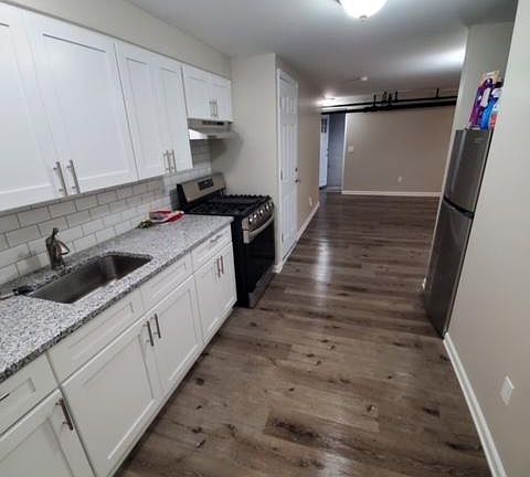 Heat and Hot Water Included Don't miss out on this cozy and completely renovated garden level unit. Brand new modern kitchen with granite counter-tops and tiled back splash. Enjoy the spacious and remodeled bath with tiled shower and lots of space. Dark laminate floors and fresh paint in a neutral color scheme complete this clean and modern apartment. All that's needed is your personal touch! Owner pays for heat and hot water, garbage, lawn and snow.