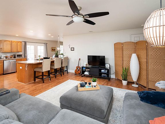 Hard to find short term rental permitted, potential multi-generational or income property. Wonderful home on large corner fenced lot in desired mid-town with views! 3 bed/ 2 bath, 2,476 sq.ft., featuring laminate floors, ceiling fan, open kitchen w/stainless appliances & breakfast bar. French doors lead to spacious back yard w/deck, fenced garden area/dog kennel, & shed. Huge vaulted bonus room featuring French doors to private balcony & picture window view of Mt. Bachelor. Upper level has private, separate access, features a second kitchen & laundry area, walk-in closet, ceiling fan, and serves as 3rd bedroom. Large 2 car garage w/remote door openers, ample additional parking in driveway & room for RV. Majestic trees, landscaped w/sprinklers, A/C, heat pump. Adjacent to Orchard Park.