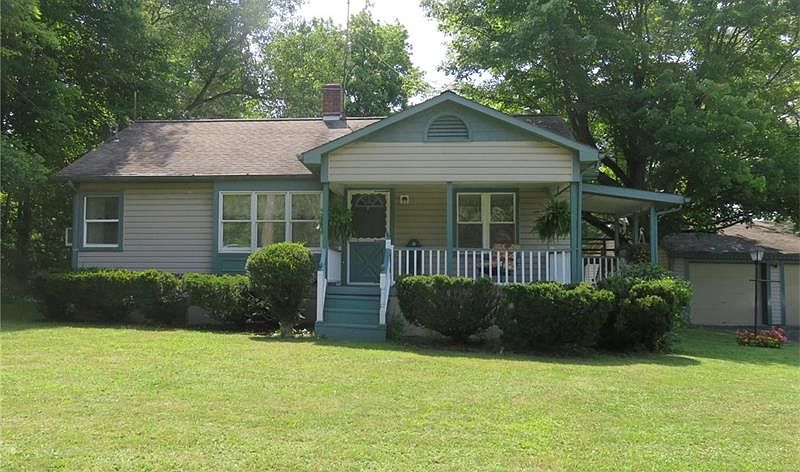 A true gem of a house on .72 acres with 3 BD, 1 BA, huge master bedroom, 2 car detached garage and great backyard! This has been a well cared for home by same owners for 50 years. Darling eat-in kitchen with great counter space and side entrance from driveway and garage. Charm abounds with the wood ceiling in kitchen, arched hallways, custom cabinets in hallway, and corner windows! Neat as a pin house and property with beautiful landscaping and perennials. A rare find is the 22x15 master bedroom that will certainly accommodate a king size bed! A spa room with hot tub included sits off the master bedroom. 2 miles from town, and 2 miles from I-79.