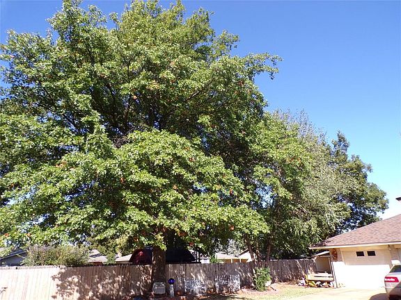 Experience the trees in Vogt addition, just north of the Weatherford Shopping Center. 3 bed, 2.5 bath, 2 living, 2 dining, or other combinations if you need an office. It has an over-size two car garage, insulated doors and recent openers, with carpeted storm shelter basement and connected to central heat and air. Built 1970, only two owners. Updates include vinyl windows, vinyl soffit, and professional landscaping all around the home. Giant oak tree, plus pecan and ornamental give you afternoon and evening shade from the west. Front and back yards have working sprinkler system. A large concrete driveway takes you from the tree-lined street to the private back of home garage with access also to the paved alley. In 2013 all rooms received new texture and paint. granite countertops in kitchen, all new Kenmore appliances, ceramic tile in kitchen, utility, and half-bath, and Carrier heat/air. New architectural grade laminated roof in 2017. New fence in 2019. This home has extra storage closets and built-in ash cabinetry with ash woodwork throughout. The living and bedrooms are all nicely sized. The u-shaped kitchen has room to move around, ash cabinets, two lazy-susans, stainless steel sink, and plenty of granite counterspace with a nearby dining space. The main bedroom has two separate closets. Owner is licensed real estate broker.