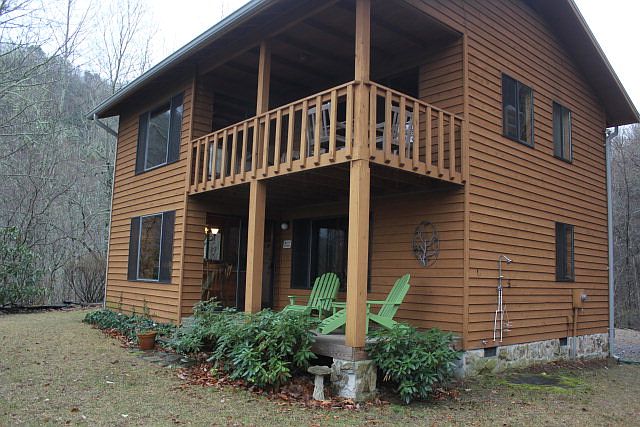 This is a gorgeous mountain cabin! Never been listed! This cabin has seclusion, easy year around access and within 5 mins to downtown Bryson City. You own the acreage around you so are all alone. This cabin has a large open floor plan of the living room, kitchen and dining. Large windows in these to enjoy the mountain and city view. Hardwood floor throughout. Laundry and half bath on main level. 3 bedrooms and 1 bath upstairs. Off of the master and one other bedroom you have access to the balcony. House comes mostly furnished. Lots of parking space outside. Nice yard area with gardening section. Fire pit to enjoy the peaceful mountains.