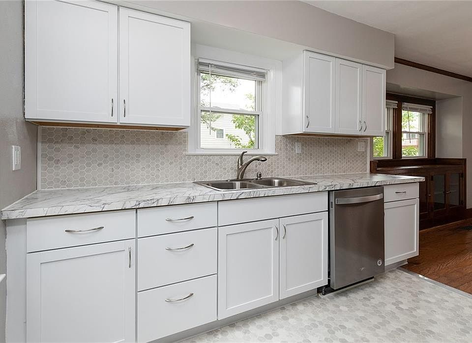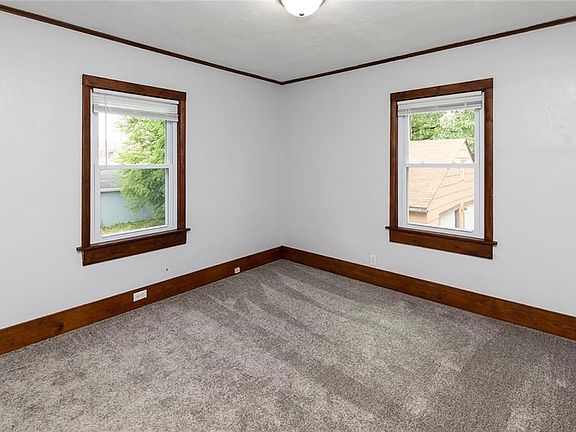 Discover the perfect combination of character & modern finishes in this immaculate home!The thick vintage wood trim, crown molding, natural hardwood floors, & built-in cupboards bring you back in time while the fully remodeled kitchen & bathroom provide a modern yet complimentary look.Greeted by a bay window in the foyer, proceed through the living rm w/ newly treated hardwood flrs to an adjoining dining rm w/ lg built-in cabinets to display all your treasures. You'll find new, matching, stainless steel, Whirlpool appl's shimmering in the newly remodeled kitchen. New carpet cozies up both bdrms on the mn level as well as the 1/2 story 3rd bdrm that has skylights so you can safely sleep under the stars. Host BBQ's on the brand new, spacious wooden deck!There's plenty of room for storage between the 2 car detached garage, the tuck-under single car garage, & the cleanest 1920's bsmt you'll ever see! Park Ave Elementary is right next door & you'll be close to all the downtown adventures.