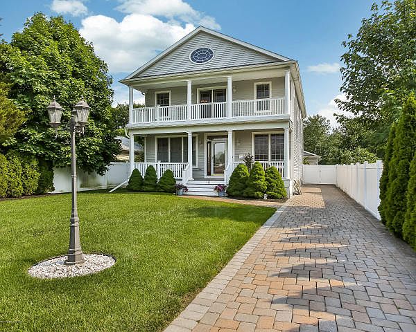 Newer Beautiful Custom Seashore Colonial w/bright spacious open floor plan. East of rte 71. LESS THAN 1 MILE to beach! High ceilings and wood floors on 1st & 2nd floor. Large kitchen w/ center island opens into the family room. Currently 2 spacious bedrooms PLUS the master suite w/ master bath & large walk in closet on 2nd floor. Addl open area w/ day bed & tv could become another bedroom. Bonus area on 1st floor easily made into a bedroom by adding french doors. Full footprint, 14 course basement is ready to be finished. Entertain on your trex deck in expansive, private, fenced in backyard. Deeded extra 50'x 50'lot, perfect for a pool. Addl features include: 2 front porches, custom paver driveway, 2-car garage, irrigation & security system, laundry room on 2nd floor & 2' x 6' constructio