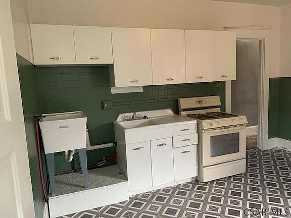 2nd floor apartment with 1 bedroom, 1 bath, living room, kitchen with stove and fridge.