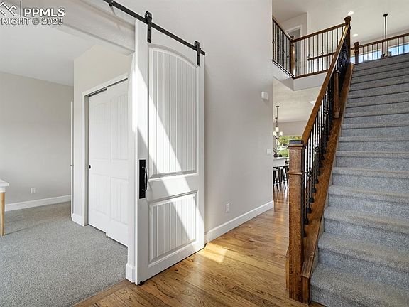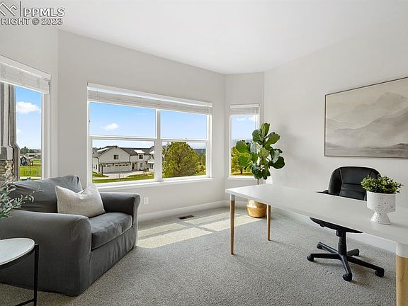 This exquisite home, located in the highly coveted Pioneer Preserve, is a dream. Nestling up to Elephant Rock and bordering the historic Santa Fe Trail, this 5 acre lot takes advantage of mountain and city views. A perfect blend of rolling meadows, open space, pines and colorful oak brush. 5 bedrooms (main level bed currently used as an office), 5 bath, 3 car garage sprawled over 3800 sq ft make this home perfect for everyday living and entertaining. Upon entering, you will be greeted by the soaring 2 story ceilings and open feel. Directly to the left, a barn door reveals the first bedroom, perfect for a home office. Features in the expansive kitchen are beautiful white cabinetry, an impressive island, walk-in pantry, and granite counters. Fingerprint Resistant Slate Appliances. The 2 story great room with gas fireplace and picturesque views make for a perfect gathering space. Walkout to a composite deck and breathtaking lot. The laundry room is conveniently located on the main level with mudroom entry space from the garage. Both secondary bedrooms have their own private bathrooms, and large walk-in closets. The primary bedroom features vaulted ceilings, a 5pc bathroom that includes a free standing tub and huge walk-in shower, as well a spacious walk-in closet. The basement offers a rec space with wet bar and drink refrigerator and a walkout to a concrete patio. Additional bedroom and full bathroom complete the finished space. Unfinished storage space of 440 sq. feet in the basement that can be used as an additional future bedroom and bathroom (rough in plumbing), workout space, or simply as generous storage. Stucco and stone finishes on the exterior for low maintenance and beauty. Easy access to old towne monument, charming Palmer Lake, Sante Fe Open Space, Trails for hiking or biking, fishing in Palmer Lake & Monument Lake, and Mount Herman -- all within minutes! With only 16 lots available in this prestigious neighborhood, don't miss this rare opportunity!