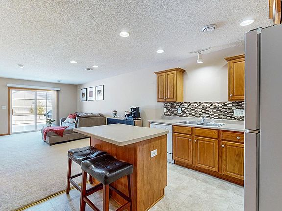 This well-maintained home features an open-concept layout with a spacious kitchen including a center island, perfect for entertaining. Enjoy the convenience of main floor laundry and a sliding door leading to a private patio area that overlooks beautiful green space. The upper level boasts two bedrooms and a full bath. Enjoy the ease of maintenance with the association handling snow removal and lawn care. Pets are welcome with some restrictions. Additional guest parking is available. Enjoy nearby parks and walking trails, theaters, restaurants and shopping. A must-see!