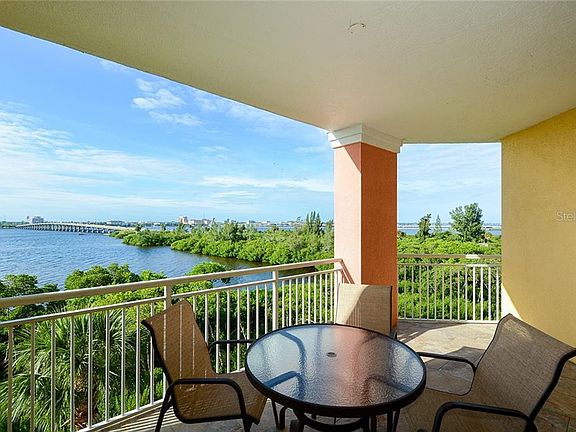 Expansive Full River Views within the gated, waterfront community of Laguna at Riviera Dunes. From fourth level balcony, relax and view the sunsets, city night lights, boats passing by and all the Florida wildlife including manatee's, dolphin and native birds. Door wall sliders are 9ft. floor to ceiling and all windows are hurricane impact. Large kitchen provides a dinette area, stainless appliances, granite counters, plenty of solid wood cabinetry and recently upgraded glass tile backsplash. Master Suite has river views, walk-in closet, dual vanities and separate tub and shower. This open floor plan with split bedroom design offers major updates done in 2019, such as solid mahogany beveled glass French doors leading into den/office area, plantation crown molded shutters, quality engineered hard wood floors, extensive wide wood crown molding, ceramic tiled balcony and freshly painted interior throughout (double coated). Indoor laundry room with shelving, 24-hr. security and covered parking. Amenities include waterside heated pool and spa, club room, gym, covered pavilion for grilling, tennis and pickleball courts. This popular waterfront community allows boat access to Tampa Bay, Intracoastal Waterway and the Gulf of Mexico. The Laguna boat dock occasionally has slips available for sale or rent as does the Riviera Dunes marina next door. Located minutes to beaches, dining & shopping, hospital, Emerson Point Preserve, Bradenton Riverwalk and the Dockside Grill & Social Bar restaurant at marina. Easy access to I-75 & I-275 with 3 major airports less than an hour away.