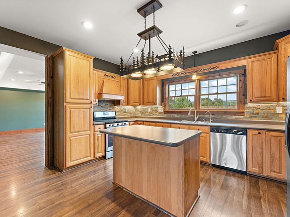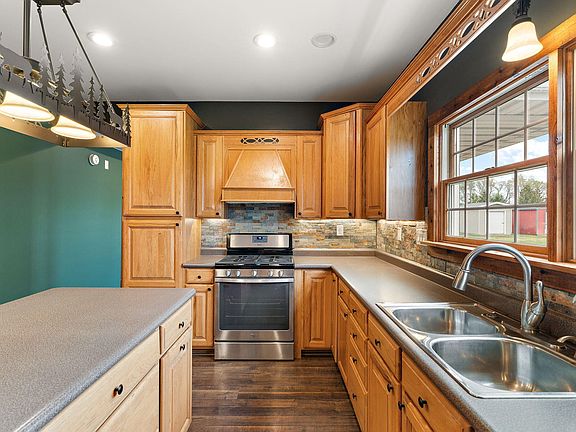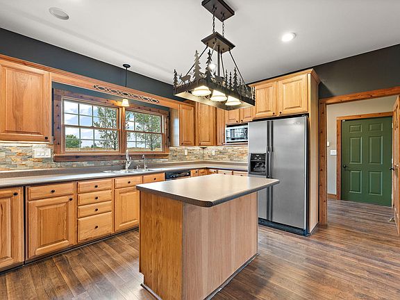 Back on the market at no fault of the sellers. Discover country living at its finest in this charming 3 bedroom, 3 bathroom home on 4.89 ACRES that perfectly balances rural tranquility with modern convenience. New cedar trim throughout the house gives it the real country feel. The wraparound porch welcomes you, while the spacious basement has a wet-bar, and electric fire place that provides endless possibilities for recreation or storage. The pole barn offers extra space for potential boats, small farm equipment or other recreational vehicles. Outside a nice brick patio awaits you as it overlooks the chicken coop. The 2 car, deep garage easily accommodates multiple vehicles and storage. With the oversized lot, there's plenty of room for gardens, gatherings, or simply enjoying the peaceful countryside views.