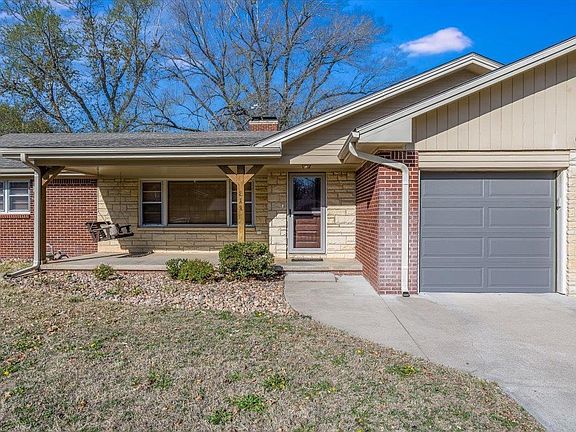 Welcome to this charming 3 bed, 2 bath ranch-style all brick home nestled in the desirable Callahan Addition. As you step inside, you'll immediately notice the mid-century vibe that gives this home its unique character. Wood floors and the large brick fireplace will draw you in, and the open-concept kitchen and dining combo in this home offers the perfect space for entertaining and gathering with family and friends. All 3 bedrooms feature the same original wood floors and ceiling fans. Built-in shelving and cabinets as well as the main-floor laundry room add to the home's functionality. This home also includes a delightful sunroom, providing an additional space for relaxation and enjoyment. Outside, the detached garage is a mechanic's dream with its own driveway perfect for car enthusiasts or anyone who needs extra space to work on their hobbies. The outdoor space also includes a beautiful covered porch, providing the perfect spot for outdoor entertaining and relaxation. And for those chilly nights or sore muscles, step into the inviting hot tub. With all of these fantastic features, this home truly has it all. Don't miss your chance to make it your own and experience the ultimate in comfort and relaxation. New roof is being installed on April 10th.
