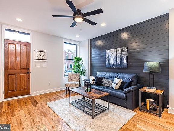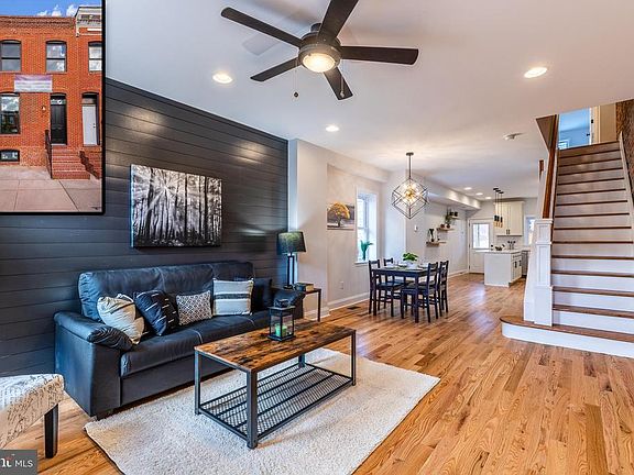 LARGE END OF GROUP CHAP TAX CREDIT RENOVATION W/ 2 CAR PARKING - this 14' wide light filled renovation features an open floor plan with hardwood floors throughout, exposed brick and designer island kitchen with stainless steel appliances, quartz countertops, floating shelves, tile backsplash and under cabinet lighting leading to oversized parking pad. Upper level offers two large bedrooms, convenient hallway laundry and rear owner suite w/ luxurious connecting bath with double bowl vanity, marble tile accents and modern fixtures. Access to roof deck from hallway with remarkable water, downtown and park views. Finished basement with 8' ceilings - chap tax credit pending final approval!