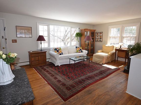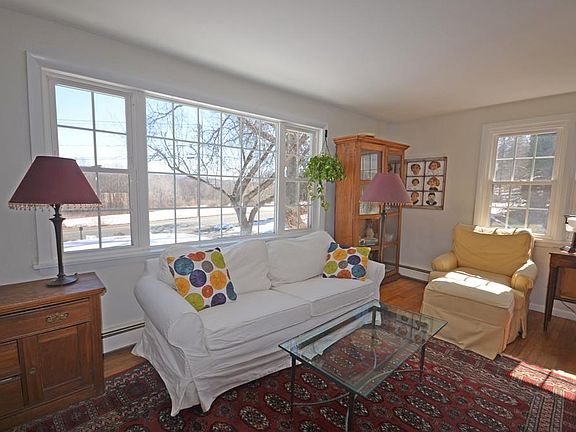 Sunny well-maintained Cape sporting bucolic views from the living room and front yard offering 4 bedrooms, 2 baths, hardwood, pine and tile flooring along with newer windows and skylights. Freshly painted interior makes this home move-in ready. The eat-in kitchen has sliders to the deck for outdoor entertaining. Enjoy the spacious back yard for gardens and play.