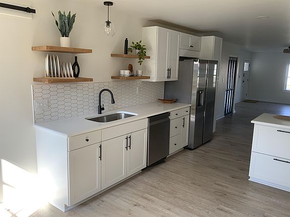 BEAUTIFULLY REMODELED HOME OFFERED. EVERYTHING LIKE-NEW. OPEN FLOOR PLAN. LARGE KITCHEN WITH QUARTZ COUNTERTOPS, NEW CABINETS AND SAMSUNG STAINLESS APPLIANCES. 3 BEDROOMS WITH SPACIOUS MASTER AND BATHS WITH NEW VANITIES AND FIXTURES. LV FLOORING AND CEILING FANS THROUGHOUT. NEW HVAC AND TANKLESS HOT WATER HEATER. NEW ROOF AND GUTTERS.OUTSIDE FEATURES INCLUDE WOODEN PERGOLA, DECK, OUTBUILDING AND FENCED IN YARD. SITUATED ON LARGE CORNER LOT . THIS HOME IS CONVENIENT TO DOWNTOWN DUNN, US 421 AND MINUTES FROM I-95. MAKE AN APPOINTMENT TODAY!