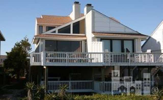 Incredible oceanfront property at Wrightsville Beach. Completely renovated in 2004. This is on the beautiful South End of the beach where there is extensive dunes and expansive views all the way down to the inlet. Large deck, open spacious living area, fireplace, garage. Three bedroom, 3 bath. This is a unique property that offers privacy and unparalleled views. A must see! Each side pays their own insurance, other minor fees shared. No dues.