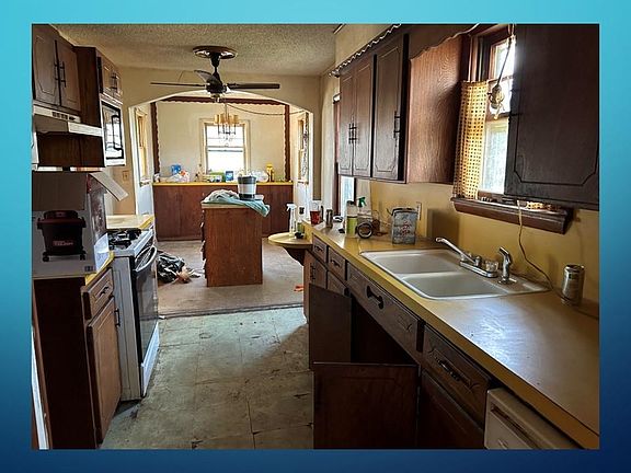Fixer upper or want to design your own the 1004 sq ft house on 411 Main is just that. Built in 1940 the frame with some siding home is a two bedroom one bath. The carport is just outside the back door where a fenced in area is built up against the garage. Cash only
