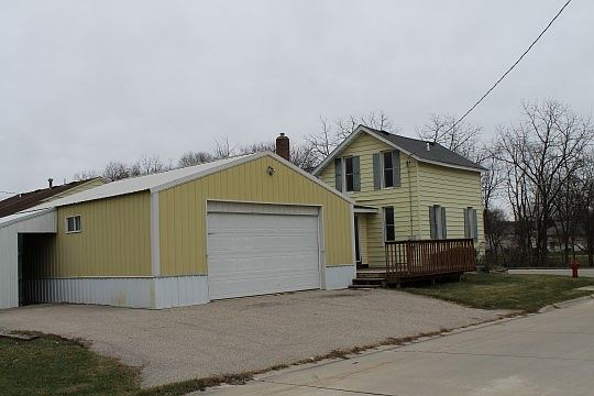 Accepted offer Pending sale, Has been Priced at well below assessed value. Comes with a Bedroom and full bath on second story, 1/2 Bath added on main level by kitchen and dining room. Dining room has patio doors out to the raised wood deck that wraps around to the large insulated detached garage which has its own furnace and AC system. Appliances are included- home and appliances are in As Seen As -Is condition, home is heated with a working furnace, shop furnace is not currently being used. Home has a breaker box and some updated wiring with GIF outlets but systems are sold in As Is condition. Home has been winterized on the plumbing. Corner Lot location and Decorah does have a walking schoolbus system in-place, home is near the Carrie Lee Middle school and not far from the downtown business area.