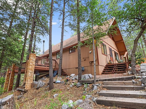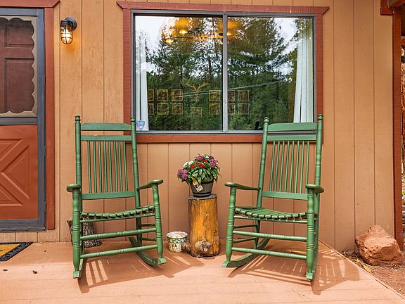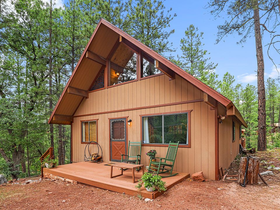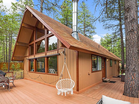 Sitting on an acre of forest, Ponderosa Springs Estates subdivision is surrounded by National Forest, so you feel far away from the chaos of daily life. This one comes with all furnishings, a fire pit for warm campfires, cooking, and s'mores. Elk, deer, and wild turkeys have all been spotted in the area.