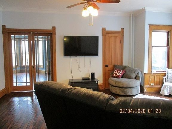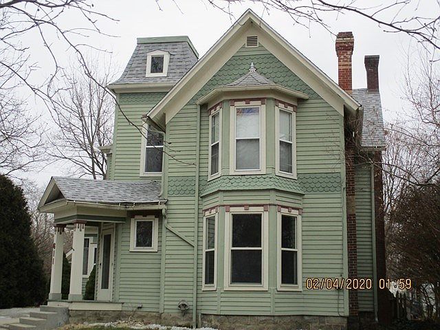 This Victorian home has it all. Natural woodwork through out the house, hard wood floors, pocket doors, french doors, stained glass window in front entry way, built in bookcase, built in china cabinet in formal dining room , stone fireplace in family room & a beautiful detailed staircase leading to the second floor. There are 3 bedrooms & a full bath on the second floor. There is a fourth bedroom on the main floor or use it as an office. Spacious living room is located in the center of the living area. Cooks in the kitchen can see through the main level while cooking. The formal entry way walks into the family room off Wayne St. The Sun Room offers a large space for coats & shoes or a great place to sit & enjoy some free time. The detached 2 car garage has a bonus room upstairs. The back yard is fenced in for the children and/or pets. A brick patio area is calling for those summer cook outs. The basement is the home for the furnace, hot water heater, extra storage & storm shelter.