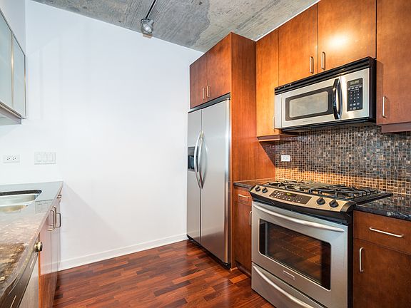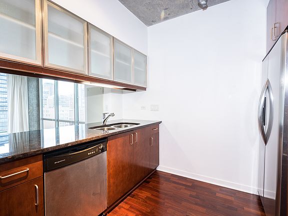 Wonderful corner unit! 1 bedroom, 1 bathroom at the Vetro! This condo brings in substantial natural light with its floor to ceiling windows, has SS appliances, in-unit washer/dryer, and private balcony. Building offers 24hr door staff, fitness center, roof deck, sauna, and spa. Near public transportation, expressways, Grant Park and the Lake. Deeded garage parking included!