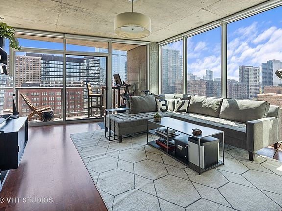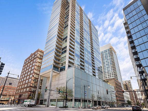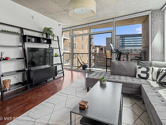 Enjoy incredible, unobstructed views from this freshly painted 1 bed/1 bath CORNER UNIT in the highly desired Vetro building in the South Loop! You will immediately feel like you are walking into a true city oasis with FLOOR TO CEILING WINDOWS, beautiful hardwood floors and chic concrete ceilings throughout. Your rare entryway space flows effortlessly into your kitchen featuring stainless steel appliances, plentiful 42 inch cabinetry, and room for additional seating to entertain. You will feel that 'wow factor' as you enter into your spacious living room filled with natural light from your floor to ceiling windows, accompanied with custom shades, and sprawling PRIVATE BALCONY! Your bedroom offers impressive closet space (and more views!) and your bathroom, with a brand new vanity top and faucet, is very generously sized. Complete with IN UNIT WASHER AND DRYER, a deeded GARAGE PARKING spot offered for an additional $30k and ADDITIONAL STORAGE - this condo truly has it all! The Vetro is a full amenity building (with LOW HOAS!) where you will enjoy the luxury of having a 24 hour doorman, package concierge, fitness room, sundeck, conference room, party room and spa with a sauna and hot tub at your convenience. You are in South Loop's Printer's Row location close to the Loop/Financial District, highway, El & Metra trains, newly finished Riverwalk Park, dog park, Grant Park and the Lake. You are walking distance to great restaurants, Trader Joe's, Target, Mariano's, Jewel and the Printer's Row Farmer's Market every Saturday during the summer. Don't miss this opportunity!