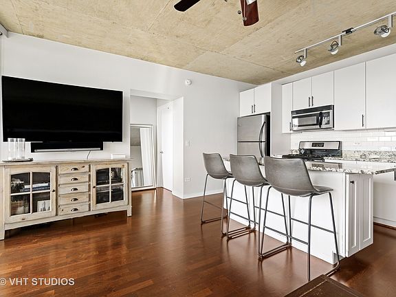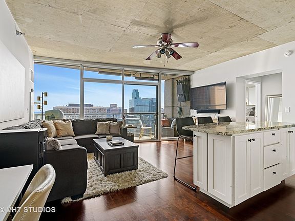 Beautiful 1 bed, 1 bath with gorgeous lake views over our city skyline. Some noteworthy updates over the past 2 years include a custom kitchen island with all new countertops and backsplash. New quartz countertop and sink in bathroom. Whirlpool washer & dryer in 2019. Full amenity building with great common areas; updated gym, beautiful terrace & party room, hot tub, steam rooms, bike room, 24 hour door person, dry cleaning service and parking. Great location! Easy highway access and CTA stops, close to the river walk and lake front. Great starter condo or in-town close to all the Printer's Row/South Loop colleges. Floor to ceiling windows, in unit washer/dryer & storage locker. Parking spot additional $25k