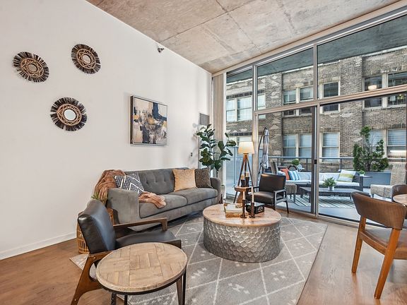 Discover the epitome of urban living in this stunning condo at 611 S Wells St #702, Chicago, IL 60607. This beautifully updated 1 bedroom, 1 bathroom home is located in a full amenity building, offering a quiet and private space where outside noise does not filter in easily. Enjoy modern conveniences such as in-unit laundry, sleek hardwood flooring and upgraded kitchen appliances. High ceilings and lovely patterned concrete ceilings add unique charm to the bright and airy home, paired with floor-to-ceiling windows. Step outside onto the amazing terrace, which remains a delightful space even at night with the right lighting. This stylish unit is in a safe and bustling neighborhood, with parks and pet space minutes away and a reasonable walk to the Loop. This unit is perfect for pet owners, couples or as a first home. Don't miss out on this exceptional opportunity to own a piece of Chicago living at its finest. Deeded parking is +$20k. A preferred lender offers a reduced interest rate for this listing.