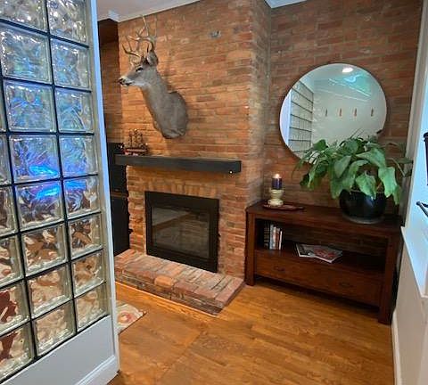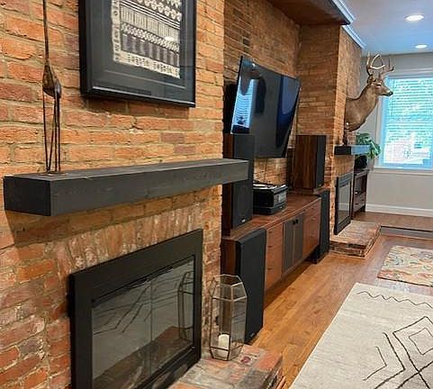 - Fireplace features: Brick, Mantel(s), Glass Doors