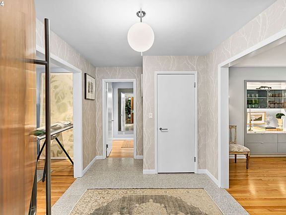 A rare opportunity to attain not just a home but a lifestyle of luxury, style and comfort. Located in the coveted Garthwick neighborhood abutting Waverly Country Club this Mid Century Modern home is the epitome of sophistication. Architect-Designer owners curated every possible element to create this extraordinary residence. The open and flowing floorplan lends itself easily to one- level living. A complete renovation inside and out was completed in 2020 with no expense spared. New Carrara marble fireplace hearth and surround with new gas insert in living room, custom buffet cabinet in dining room with designer lighting, down to the studs remodel of kitchen with Dacor "Modernist" appliances and graphite stainless finish. 6 burner commercial cooktop with steam and convection,100 bottle wine fridge, 2 Miele dishwashers, custom cabinetry and large double islands with honed Carrara marble. Down to the studs bathroom remodels include heated Italian marble floors, wall-hung Toto toilets, Carrara tile, custom cabinetry and high-end fixtures. 24 foot wide Fleetwood sliding glass doors in family room open to a private, professionally landscaped yard with custom built steel and IPE deck. Outdoor entertaining is elevated with the added features of a 48" wood- fired pizza oven and a built-in KitchenAid gas grill. Finished garage includes durable epoxy-coated floor and extensive storage cabinetry throughout. This home is in a whole different category of luxury real estate. Taste and style personified. Utmost in quality and design. It's perfection. Clackamas county tax advantage a wonderful benefit. [Home Energy Score = 3. HES Report at https://rpt.greenbuildingregistry.com/hes/OR10234190]