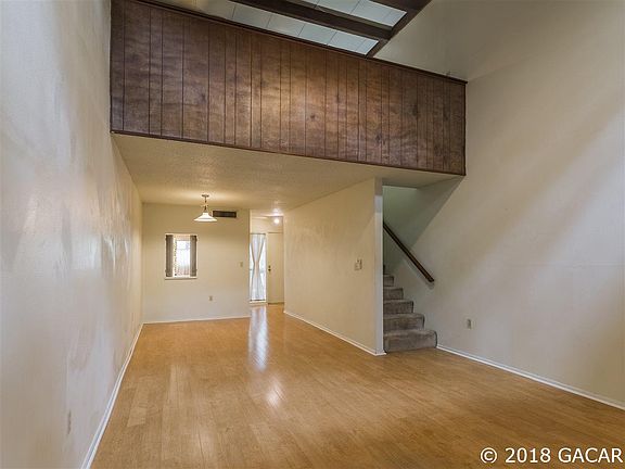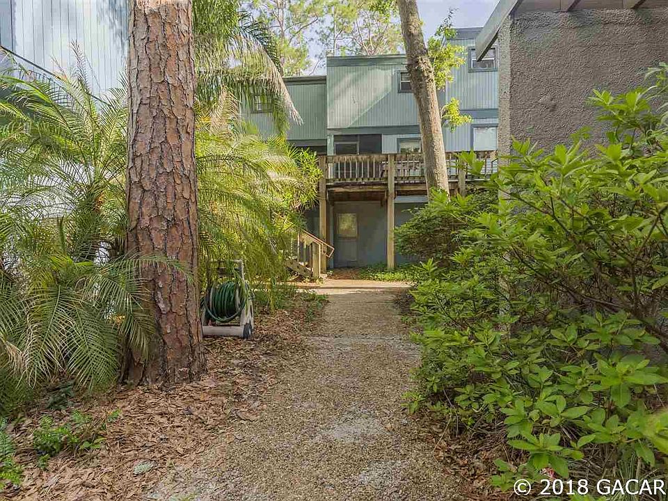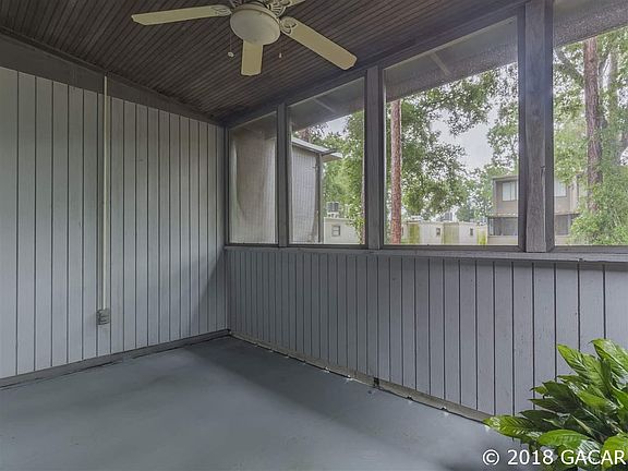 Fantastic light-filled condo with plenty of space for entertaining in a quiet and friendly complex. Perfect for folks looking for an affordable, pretty, clean and comfortable place to come home to. Tidy and well-loved. Powerful HVAC, good roof, high ceilings with upgraded fans. Attractive laminate flooring in living room and kitchen, ceramic tile in bathroom and neatly carpeted bedroom with extra large walk-in closet. Convenient to shopping, Publix, UF, hospitals and I-75. Bus line stops out front. Hang a hammock and stretch out on your large screened porch, or relax with a cool beverage and a book on the front deck. Pool and clubhouse in community. Indoor cats allowed, but no dogs per HOA rules.