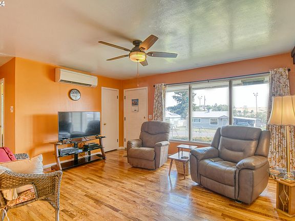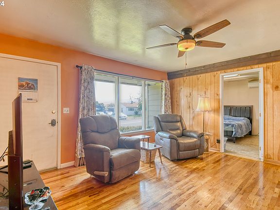 Come see this adorable 3 bedroom, 2 bath, one level home, located on a generous corner lot in the quaint community of Pilot Rock - the home of community days, potlucks and and taking pride in helping your neighbor. Appreciate the hardwood floors, picture window views, and lots of storage throughout. Convenient kitchen with adjacent oversized utility with large pantry and room for small office space. Appreciate the popular split bedroom floor plan with 2 bedrooms one bath on one side and the primary bedroom with ensuite bath on the other. Outside you find a covered BBQ deck, perfect for entertaining, and a spacious fenced backyard, two metal sheds and an almost 500 sq ft garage/workshop, while the corner lot provides multiple parking space. Enhanced by a modern roof, modern siding, and upgraded ductless HVAC, with tankless water heater and multiple plumbing updates, this home has been very well cared for and provides impressive value. Call Today!