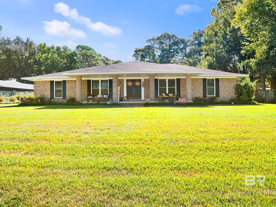 Just under 1-acre in Spanish Fort Estates, well maintained and recently updated, very spacious, one-story brick 4/3 with almost 3,000 Sqft of living space. Oversized Great Room is 24x23, with a large brick fireplace w/gas starter, hard wood flooring, custom built-in cabinetry. Remodeled Kitchen, convection oven, electric range, pantry, under-cabinet lighting, granite counter tops, backsplash, and breakfast bar. Large formal living and dining area with hardwood flooring. 20x18 bonus room with custom shelves, full bath, laundry area, would work great for a mother-in-law suite. Bedrooms are large with lots of closet space, 13 closets in total. New Electric Rear Gate, rear side-entry double garage. Rear yard features a huge “Park Like” lawn. No HOA. Under a Termite Contract. Updates include: Fortified Roof 2020, new windows, new kitchen, replumbed, sprinkler system front & back. 2023 Carrier 5-ton HVAC 16+ SEER, 2022 Mini Split 21.5 SEER; 2023 Carrier Comfort 80 Gas Furnace. Spanish Fort Estates in conveniently located near shopping, schools, parks and restaurants, with easy access to I-10. More photos to follow shortly. Buyer to verify all information during due diligence.