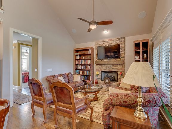 Don't wait for new construction. This home has been meticulously cared for & shows like new. You'll love the open floor plan with downstairs master BR suite. The many thoughtful upgrades include: Hardwood floors extending to stairwell and upstairs hallway, coffered ceiling in DR, stacked stone fireplace and granite countertops in all bathrooms, in wall speaker, tankless hot water heater, programmable thermostats, irrigation system for lawn, plantation shutters on lower level, screened in porch.