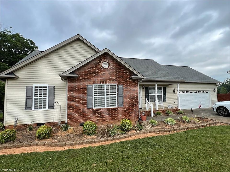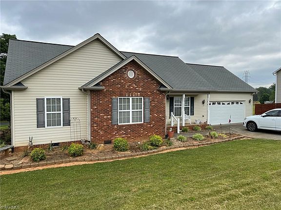 All one level living! Gorgeous home with 3 bedrooms, 2 full baths, 2 car garage. Covered front porch, deck in back. Great open floor plan w/Kitchen w/all appliances remaining, Dining w/ french door leading to deck and fabulous yard and flower garden, and Living room w/vaulted ceilings, fireplace w/gas logs. Beautiful features throughout this home. Living room and Primary w/vaulted and trey ceilings. Tons storage in walk in closets, Laundry room, 2 car garage & more!