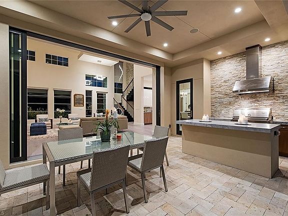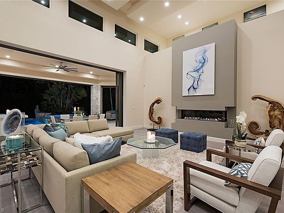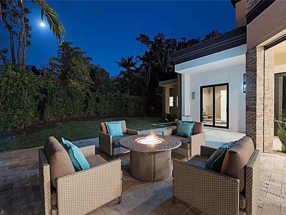 Sleek, luxurious, sprawling and sophisticated describe this magnificent newer home in The Moorings with a warm design. Great room floor plan offers 20-foot ceilings and fireplace adjoining fabulous kitchen with massive island and sun-drenched eating area. Bank of windows across the southern front of the home brings loads of light in all day long. The gorgeous wide plank French oak flooring throughout offers a current look and a backdrop for timeless decor. The superb floor plan offers master with en-suite guest room on the 1st floor with large den (currently used as bedroom) and comfortable loft on the 2nd floor adjoining 2 en-suite bedrooms and balcony. The very green outdoor space is fabulous with a generous oversized lot, outdoor kitchen, unique pool and spa design, multiple entertainment venues, and remote-controlled screen for oversized under-cover seating. Just a mile from the beach (3-minute drive to Moorings Beach Park), 2 miles to the renowned Venetian Village, and 2 miles to famed 5th Avenue district, this location offers the best that a Naples lifestyle has to offer. This tree-canopied, quiet and charming street is a short distance to loads of restaurants and shopping.