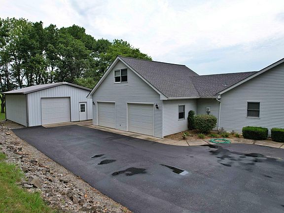 Very well maintained spacious home on 5 acres. 3 bedrooms, 2 bathrooms with 2800 sq feet. New central heat and air conditioning, gas fireplace, roof is only 2 years old, upgraded kitchen cabinets and countertops, new flooring, newly paved driveway and pole barn with insulation. There is also a bonus room above the garage. Plenty of room outside to roam.