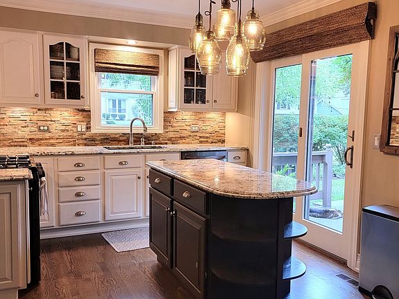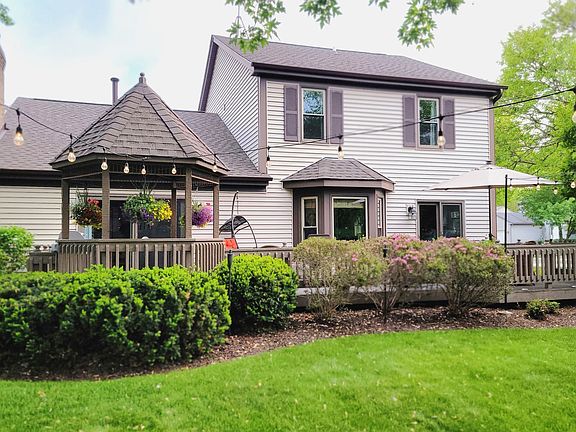 This home has been impeccably maintained by the original owner and has recently undergone a thorough home inspection. The main floor features solid hardwood floors, crown moulding and elegant baseboards. The kitchen has been updated with high-quality appliances, under-cabinet lighting, granite countertops and a large island. Open to the kitchen is a large breakfast area with a bay window and a family room with a gas fireplace flanked by custom, built-in cabinets. The upstairs level has rich, wood-simulated laminate flooring throughout the 3 bedrooms, and the full bathroom features luxurious tile, an extra-deep tub and a spacious linen closet. Head through the glass-paned door to the inviting finished basement, featuring vinyl wood-grained flooring, recessed dimmable lighting and a charmingly decorated full bathroom. The fitness room includes a wall-mounted TV, large mirror and scenic window scape, and can be converted to a 4th bedroom or home office. There's plenty of storage area in the crawl space beneath the family room, which is cement-lined and topped with high-quality carpeting. Outside is your own personal paradise, featuring a large deck with a gazebo and a flagstone firepit area nestled within professionally-designed landscaping. At night, you'll relax by the fire and take in the scenic views of the landscape lighting and wirelessly-controlled string lights. The large 120 square foot shed has electrical service and the exterior matches the color scheme of the house. The 2 car fully-insulated garage has a step-up area with a built workbench, shelving unit and laundry tub. The professionally-installed epoxy garage floor will resist stains and winter salt for years to come. If you need more space, there's a handy pull-down staircase that will lead you to the lighted storage area above. The newly installed steel, insulated garage door has windows to bring in plenty of light. Other upgrades include: New roof, downspout and gutters (2022) Upgraded windows with etched trim and a lifetime warranty High-quality window treatments on the main level High-efficiency furnace New sump and eject pumps (2022) Water softener Paver brick sidewalk leading to the front door