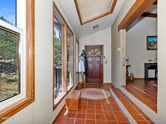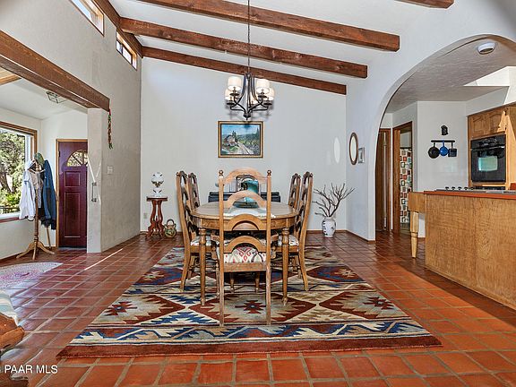 Discover The Charm Of This Unique Santa Fe Style Home In Picturesque Prescott, Az. Featuring Beautiful Stone, Double Sided Fireplace That Adds Warmth And Character To The Living Space, Large Dining Room Conveniently Situated Next To The Kitchen, This Property Is Perfect For Hosting And Entertaining Guests. The Exquisite Wood Beams And Santa Fe Tile Accents Add A Touch Of Southwestern Elegance, Creating A Harmonious Blend Of Style And Comfort. Dedicated Office Space Located Off The Master Bedroom, Providing A Private Retreat For Work Or Study. Unwind And Entertain On The Open Deck, Where You Can Bask In The Beauty Of Nature And Relish In The Cool Prescott Breeze. The Extended Driveway Provides Ample Parking Space, Accommodating All Your Needs And Ensuring Convenience For You And Your Guests