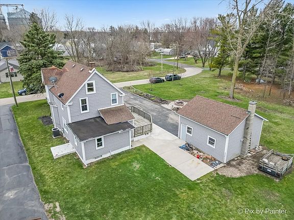 Nestled within a quaint neighborhood, this 1915 home stands as a testament to timeless architectural elegance, now enhanced with a thoughtful renovation completed in 2019. Sitting on nearly half an acre, the lot is a perfect size, backing to privacy. Enjoy luxury shake shingle vinyl siding (2016), newer roof, and newer windows throughout (2012). Upon entering, you are greeted by a large ceramic foyer that leads to a full bath, the living room and dining room with original hardwood floors. The dining room opens to the very large kitchen with stainless steel appliances, crown molding, ample cabinet and counter space and a pantry/mudroom leading to the deck. The deck is perfectly large to host and looks onto the spacious yard. In the back of the home, French doors open to a sunlit office. Upstairs you have 3 bedrooms and huge full bath with a double vanity, rustic barn wood accents, ceramic tile, and great soaking tub with shower (2018). Attic is spacious and light. Unfinished basement has 2 convenient entrances and expands the entirety of the home with great storage shelving, laundry, windows and more. The detached 2 car garage is great for tinkering away and has a full loft with staircase to stow away extra storage. Although a lot of newer improvements, the home still holds a seamless blend of old charm and new comfort. Slow down and enjoy life's simple pleasures at this rural home in Esmond.