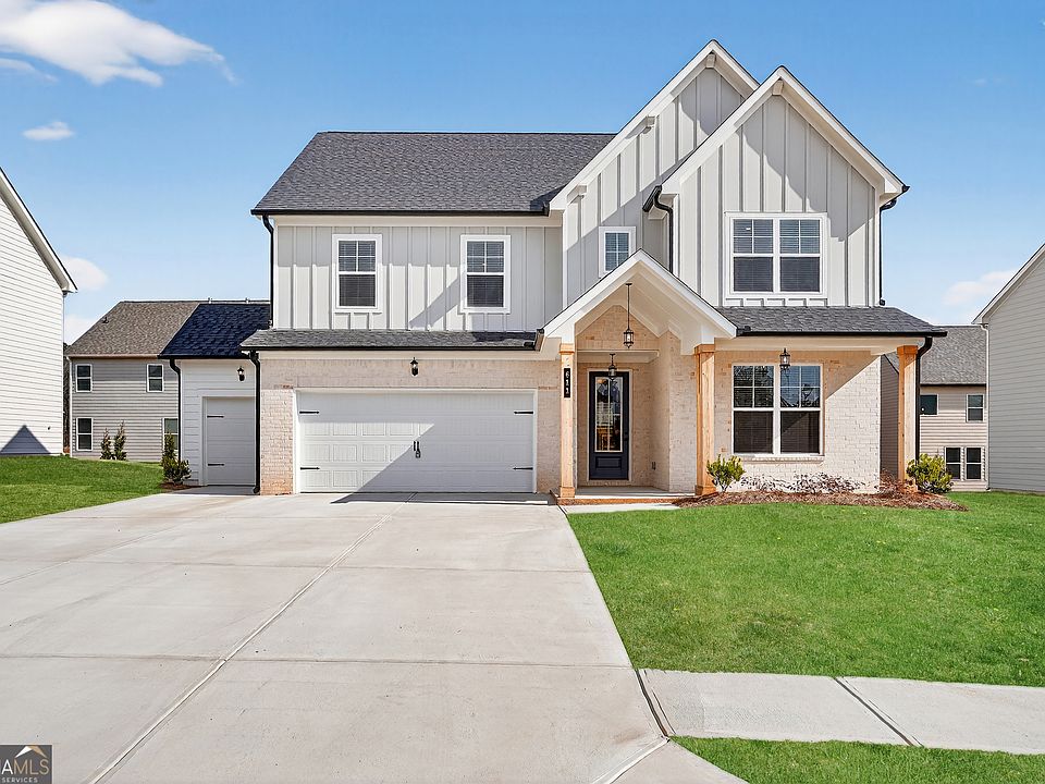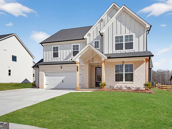 Peachtree Building Group presents the stunning Auburn Tandem Floor Plan at The Fairways 16 at Mirror Lake - Lot 41! This beautifully crafted two-story home blends luxury, comfort, and modern design with 5 spacious bedrooms and 4 full bathrooms in an open, light-filled layout built for both everyday living and entertaining. The chef's kitchen features granite countertops, 42" soft-close cabinetry, and an oversized island that flows seamlessly into the family room, highlighted by an elegant recessed linear electric fireplace for cozy evenings. The owner's suite offers a true retreat with a spa-inspired bath, porcelain tiled shower with glass enclosure, and an expansive walk-in closet. An upstairs loft provides additional flexible space for a home office, media room, or play area. Thoughtful details throughout include luxury vinyl plank flooring in main living areas, upgraded black hinges and door hardware, designer lighting from Progressive Lighting, cordless blinds, WiFi garage door opener with two remotes, and LVP stair treads. Outdoor living is enhanced with a covered front porch and covered rear patio. Move-in ready with an incredible incentive: No payment until May 2026! Buyers also receive $35,000 FLEX CASH and an additional 1% with our preferred lender, plus a 1-year golf membership to both Mirror Lake and Chapel Hill Golf Clubs. Located in a quiet, family-friendly community with resort-style amenities including two 18-hole golf courses, tennis courts, 3 swimming pools, a clubhouse, and on-site restaurant. Convenient access to I-20 makes commuting to Carrollton, Douglasville, or Atlanta effortless, while top-rated schools and scenic surroundings complete the lifestyle. The Auburn Floor Plan is designed to elevate how you live - schedule your tour today.