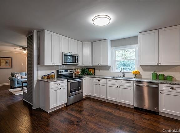 Great updates throughout this full brick ranch with basement home! Wood look laminate flooring and freshly painted interior. New white kitchen with sleek counters and new stainless steel appliances opens to Formal Dining Room. Living Room and Great Rooms have lighted fans overhead. Great Room with brick hearth fireplace. Updated baths include new fixtures. 2 BRs on main. Too many updates to list here - see it soon!