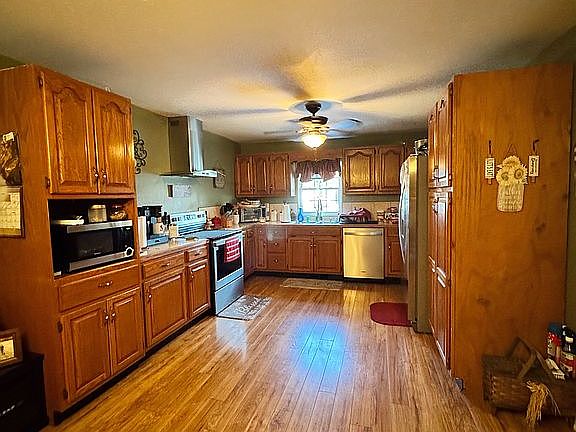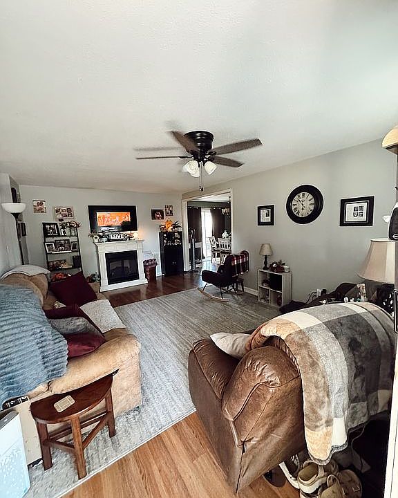 Pristine Ranch-style home featuring an 18 x 24 workshop complete with a covered patio and hot tub area. The workshop is equipped with a window unit for heating and cooling, and there's a convenient lean-to at the rear for additional storage. This charming 3-bedroom residence spans approximately 1,300 square feet and includes two full bathrooms, as well as a mix of laminate and hardwood flooring throughout. Enjoy year-round comfort with central air and heat. The backyard is fully fenced with a combination of chain link and vinyl materials, offering a secure and private space. Nestled in a peaceful neighborhood, this delightful home boasts a stunning flower garden that comes to life in the spring. The roof was recently replaced at the end of 2023, and both the hot water heater and kitchen appliances were updated in 2022. Please note, this property is not available for rent-to-own or rental options.