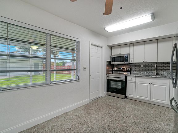 Bring Your Boat or Jet Ski! Beautiful Remodeled Single Family Home offers 2 Bedroom, 2 Bath, Carport & 25'x15' Workshop/Shed with a roll up door and located on a Quiet Street with NO HOA in Lantana. Located 3 Blocks from the Sportsman Park/ Boat Ramp, the Bicentennial Intracoastal Park, Lots of Restaurants, Shops & the Beach! The Eat-In Kitchen has New White Cabinets, Granite counters and Brand New Stainless Steel Appliances. Charming Terrazzo floors throughout, New Freshly Painted Knockdown Walls & Ceilings, two Updated Bathrooms & W/D, compliment this home and New Roofs. Relax in your Covered Screened Patio & Enjoy BBQ's in Lush Green Fully Fenced Backyard and shutter for hurricane protection.