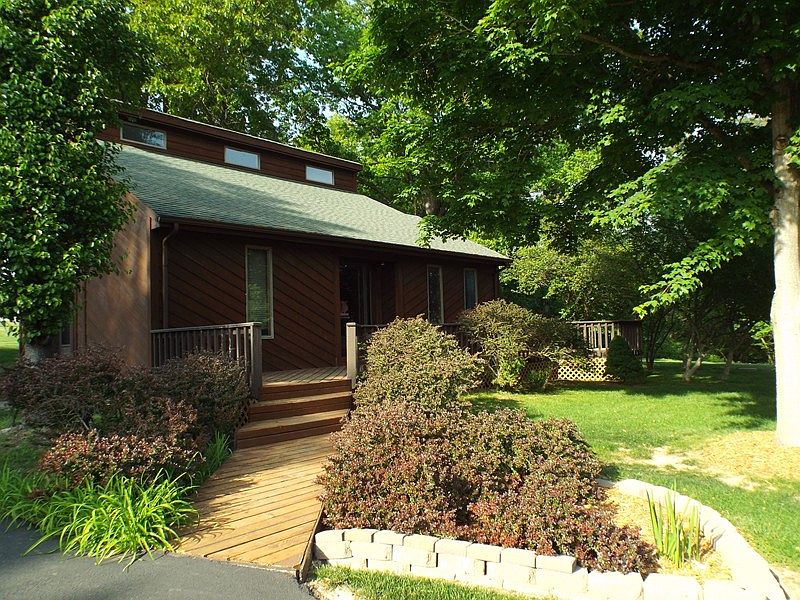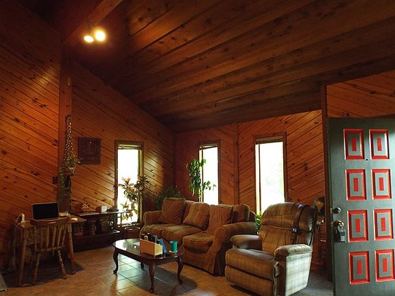 This cedar sided home sits on almost 5 acres. Vaulted ceilings, ceramic tile floors, loft office, oak kitchen with planning desk. This owner has taken really good care of the home replacing the heat pump in 2014, the roof in 2007, basement waterproofing in 2009, guttering with gutter guards in 2012 and adding an asphalt driveway in 2011. There is a wrap around deck and a custom built detached 2 car cedar sided garage. There is a full dry basement. Lots of wildlife. Turkey, deer, bobcats. Peace and privacy just 5 minutes from town.
