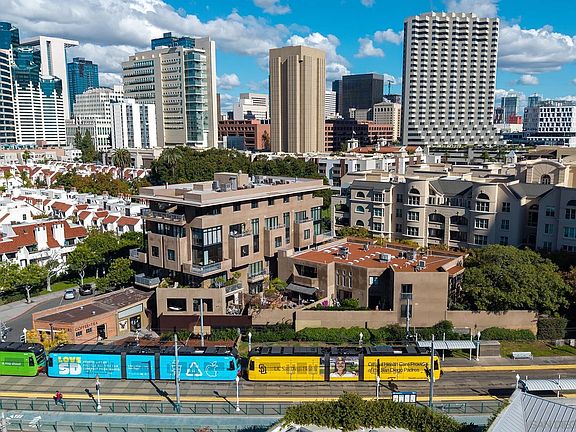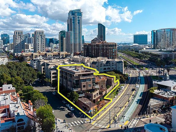 The Brickyard is not your typical downtown building - it's a rare harmony of urban design and coastal calm. Located in the heart of one of San Diego's most walkable, energetic areas, this unique home is peaceful—lifted above the street, filled with light from floor-to-ceiling windows, and connected to the outdoors with multiple private decks overlooking the Marina and Embarcadero. The single story layout spans over 2,000 sq ft with a spacious primary suite, common living area, large kitchen with new appliances and second bedroom. The Embarcadero stretches out to the west, offering a visual reminder of San Diego’s maritime character and its easygoing waterfront lifestyle. Meanwhile, the city’s cultural heartbeat surrounds you—restaurants, nightlife, arts, sports, parks, and transportation all within minutes. Add the perks of a dedicated laundry room, two secured parking spaces, large storage space, train and trolley stops nearby, and a favorite neighborhood coffee spot downstairs, the convenience is unmatched. This rare find is for those who crave walkability and city life without compromising indoor/outdoor space, design, or function.
