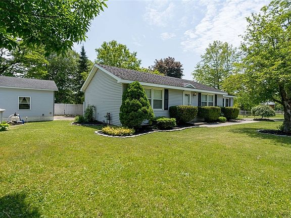 GREAT RANCH HOME IN DEXTER!!! Come see this adorable home located in the Village of Dexter, just minutes from the Black River, Lake Ontario, Watertown, and a short commute to Fort Drum. One level living in this two bedroom, one and a half bath property. Enter into the mud room with a large coat closet and washer/dryer. You’ll find the kitchen has plenty of storage and lots of counter space. There’s a pantry closet also for extra storage. The formal dining room leads into the spacious living room with vaulted ceilings. Good sized bedroom with lots of closet space. The primary bedroom has an attached half bath. The full bath is located between the two bedrooms. Great landscaped yard, and patio. The garage has one door but is the size of a two car garage, with a recreational space as well that currently has a bar. Such a great home at a great price! Don’t miss it!!!
